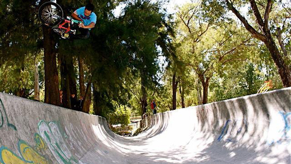 Em um dia ensolarado em 2000, Mike "Rooftop" Escamilla estavam no topo de uma rampa de madeira esboçado no quintal de um completo estranho perto de Lake Elsinore, Califórnia, e de tamanho acima do loop (acho montanhas-russas, mas construído para skates e bicicletas). Ele sabia que era factível - Tony Hawk tevesucesso puxado um em um skate três anos antes, e Escamilla tinha construído uma carreira traduzindo skate em BMX. Ainda assim, os paralelos entre a alça de Falcãoe este foram praticamente inexistentes.